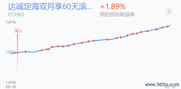 2、加仓1个单位$达诚定海双月享60天滚动持有短债债券C$,债券延续牛市行情,昨天债基纷纷下蛋,这一波持仓债基多的真是赚了,达诚定海双月债很有优势,它不是收益率最强的那只基金,但如果想要综合收益和回撤两点优势的话,就是它了,很少看到回撤,所以在我的债基配置里达诚双月债的持仓是最多的,已经达到6万元了。