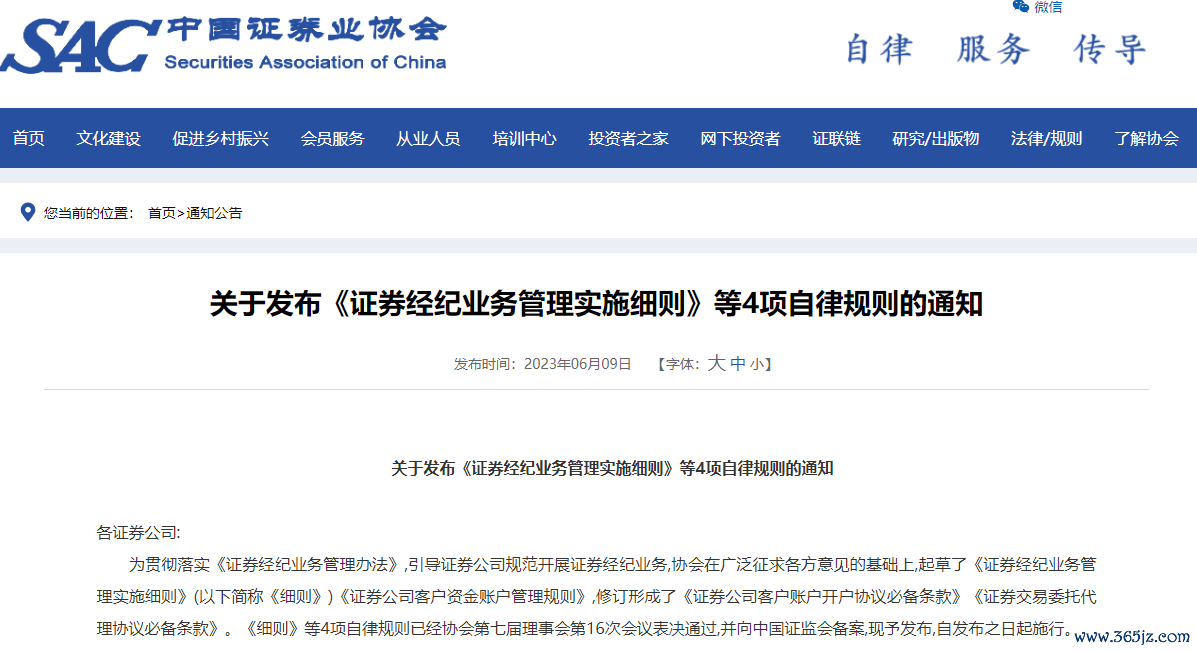 为引导证券公司规范开展证券经纪业务,提升证券公司证券经纪业务管理水平,6月9日,中证协发布了《证券经纪业务管理实施细则》(下称《实施细则》),于即日起实施。